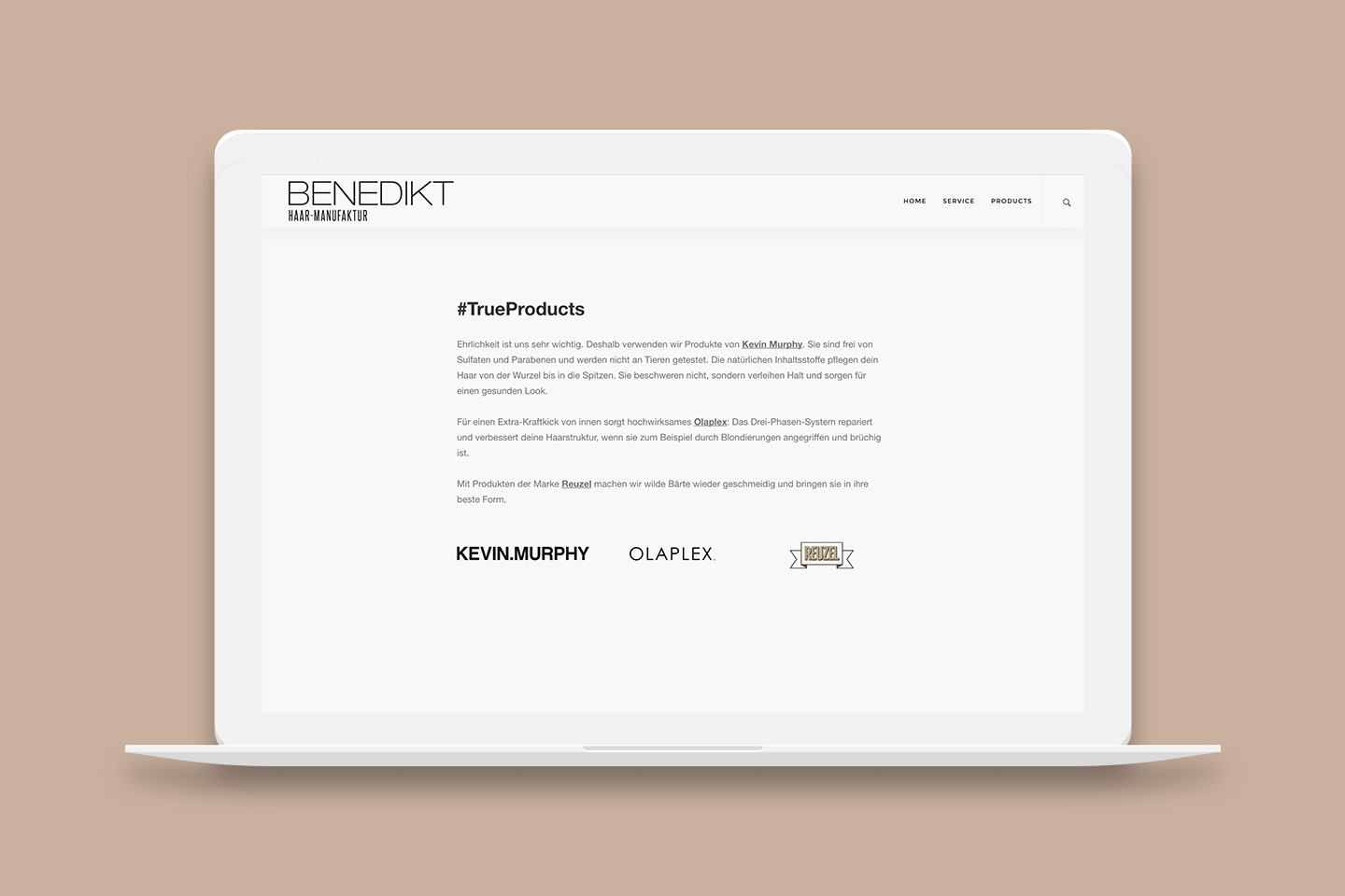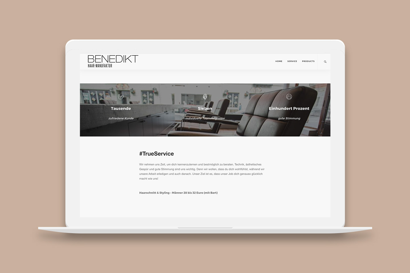 Web Design für Benedikt Haar-Manufaktur in Würzburg.